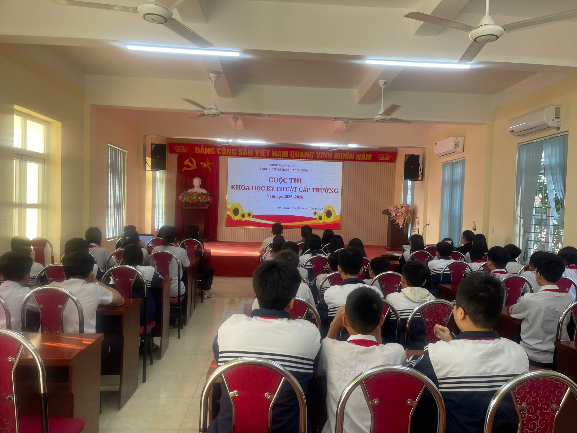 Sáng ngày 03 tháng 11 năm 2025 tại trường TH&THCS Quang Hưng đã điễn ra cuộc thi KHKT cấp trường năm học 2025 - 2026. Cuộc thi năm nay có 02 sản phẩm đoạt giải: 01 giải Nhất, 01 giải Nhì. BTC đã lựa chọn ra sản phẩm xuất sắc nhất để tham gia cuộc thi KHKT cấp thành phố năm học 2025 - 2026: Dưới đây là báo cáo của dự án KHKT đoạt giải Nhất cấp trường.