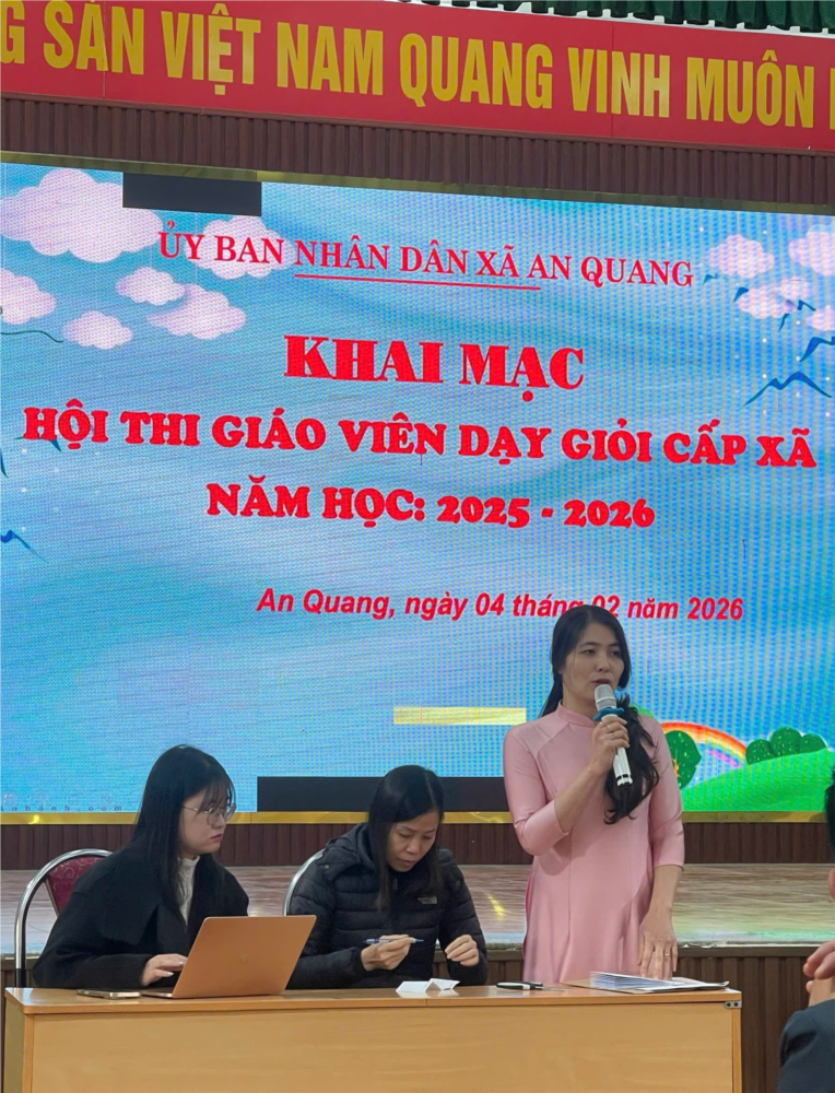 Sáng ngày 04/02/2026, tại Nhà văn hóa UBND xã An Quang, Hội thi Giáo viên dạy giỏi cấp xã bậc Tiểu học và Trung học cơ sở (THCS) năm học 2025 - 2026 đã chính thức được khai mạc. Đây là hoạt động chuyên môn quan trọng nhằm tôn vinh những người thầy, người cô tâm huyết và có phương pháp giảng dạy sáng tạo.