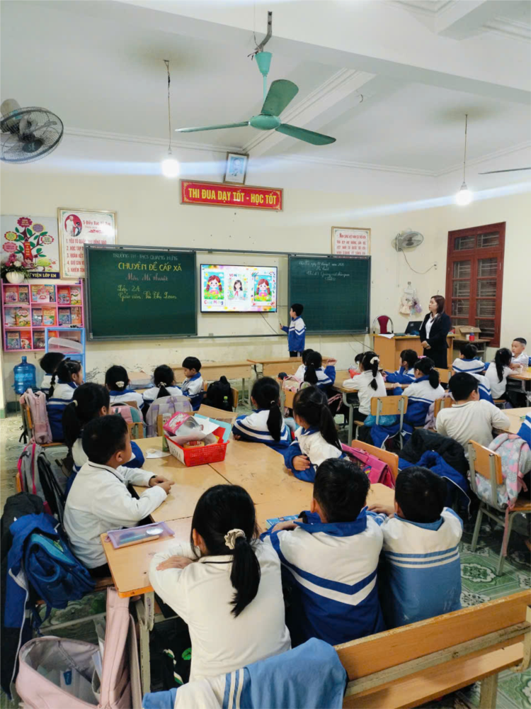 Trong tiết dạy minh họa của cô giáo Vũ Thị Loan – Chủ đề 7: Gương mặt thân quen (Tiết 3), giáo viên đã khéo léo tổ chức cho học sinh tham gia các hoạt động trải nghiệm như: quan sát, thảo luận nhóm, đề xuất ý tưởng, thiết kế và tạo sản phẩm từ các vật liệu quen thuộc, gần gũi với đời sống. Quá trình học tập chú trọng phát huy tính tích cực, chủ động, khả năng sáng tạo và kỹ năng hợp tác của học sinh.