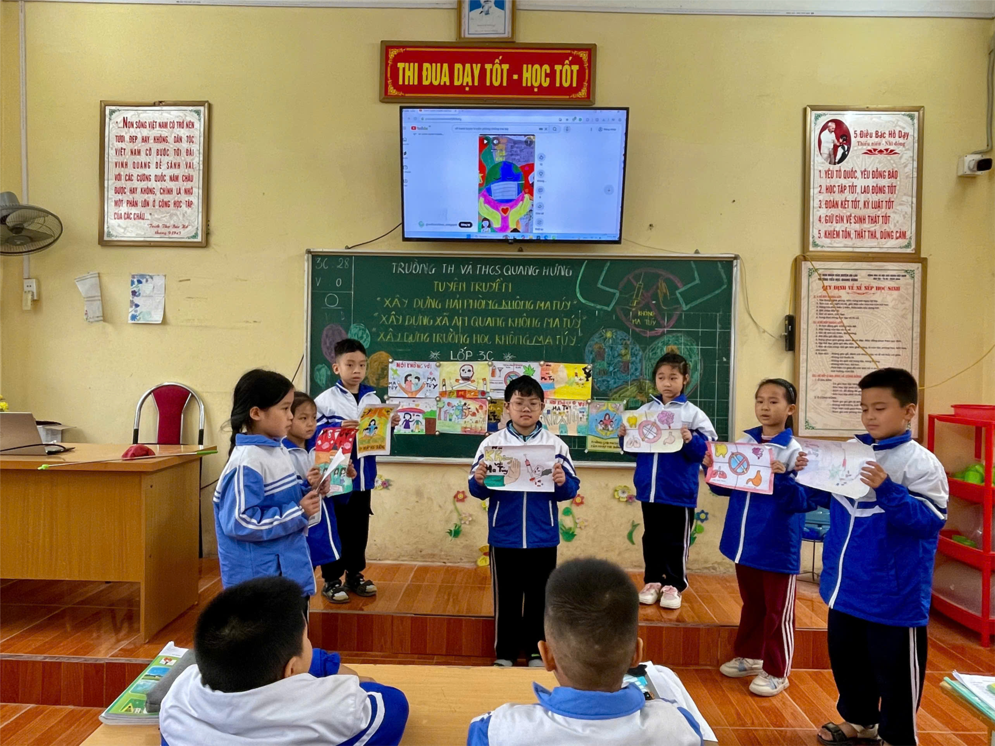 Hưởng ứng phong trào “Xây dựng Hải Phòng không ma túy”, “Xây dựng xã An Quang không ma túy” và “Xây dựng trường học không ma túy”, Lớp 3Cđã sôi nổi tổ chức nhiều hình thức như: Thi vẽ tranh, Thi tìm hiểu về tác hại của ma túy, Thi hướng dẫn viên nhí…..