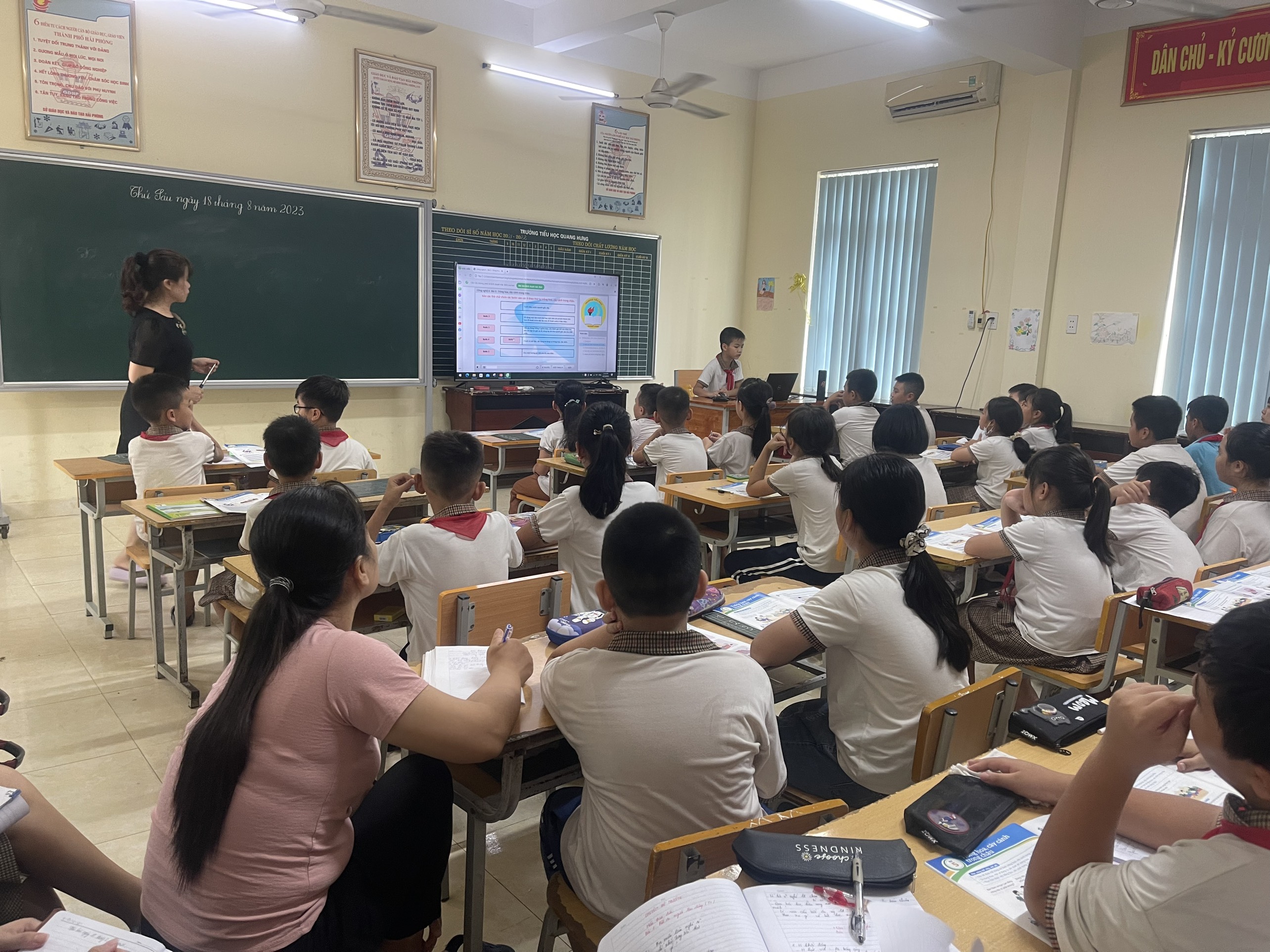 Đây là bài dạy đầu tiên sử dụng thiết bị dạy học số do giáo viên trường TH Quang Hưng xây dựng để nâng cao chất lượng giảng dạy của nhà trường.