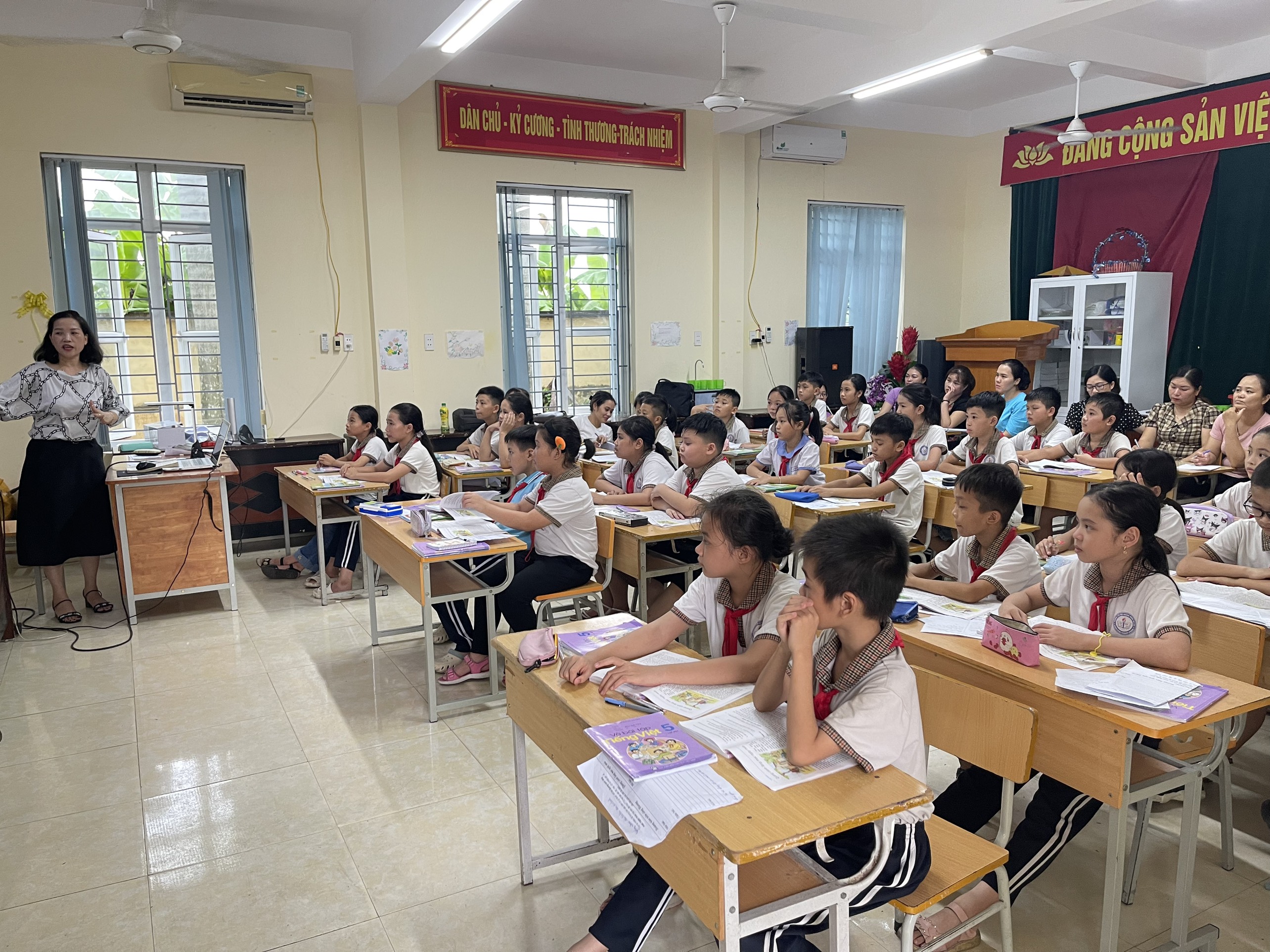 Để buổi SHCM đạt hiệu quả cao, các đồng chí trong Ban giám hiệu, tổ khối trưởng cùng các đòng chí giáo viên đã nghiên cứu nội dung, yêu cầu cần đạt của bài, tập trung xây dựng kế hoạch bài dạy, lên lớp, dự giờ, phân tích bài học... GV tổ chức các hoạt động học tập phù hợp, vận dụng linh hoạt các kĩ thuật dạy học tích cực đồng thời ứng dụng CNTT giúp học sinh hứng thú, kích thích trí tò mò, ham muốn được khám phá kiến thức.