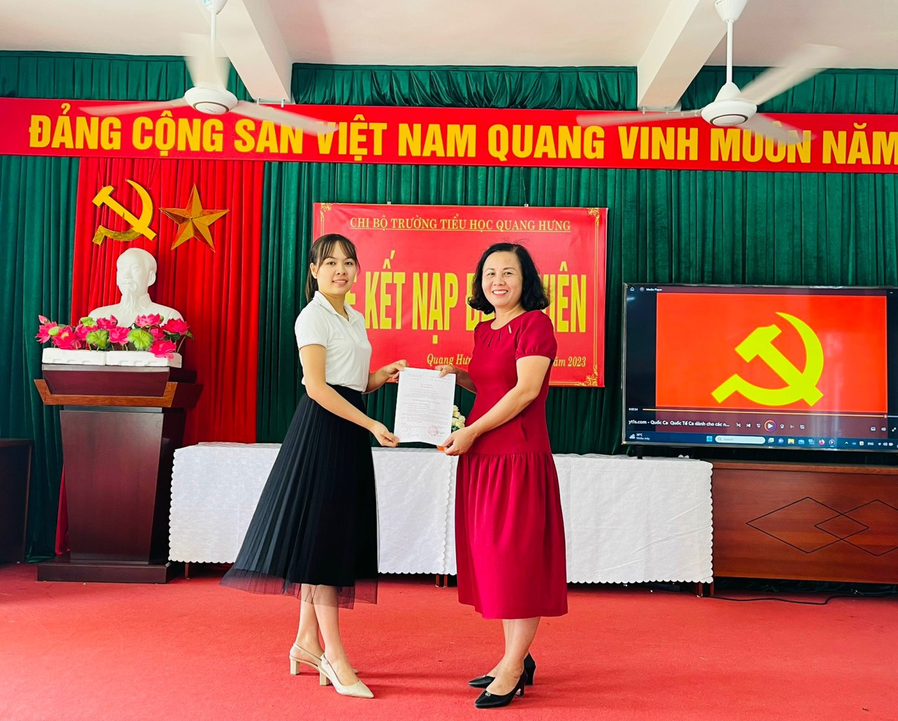 Lễ kết nạp Đảng viên đã bổ sung cho chi bộ thêm hai đ/c nhiệt tình, tâm huyết, tăng cường sức mạnh của Đảng đối với chi bộ TH Quang Hưng.