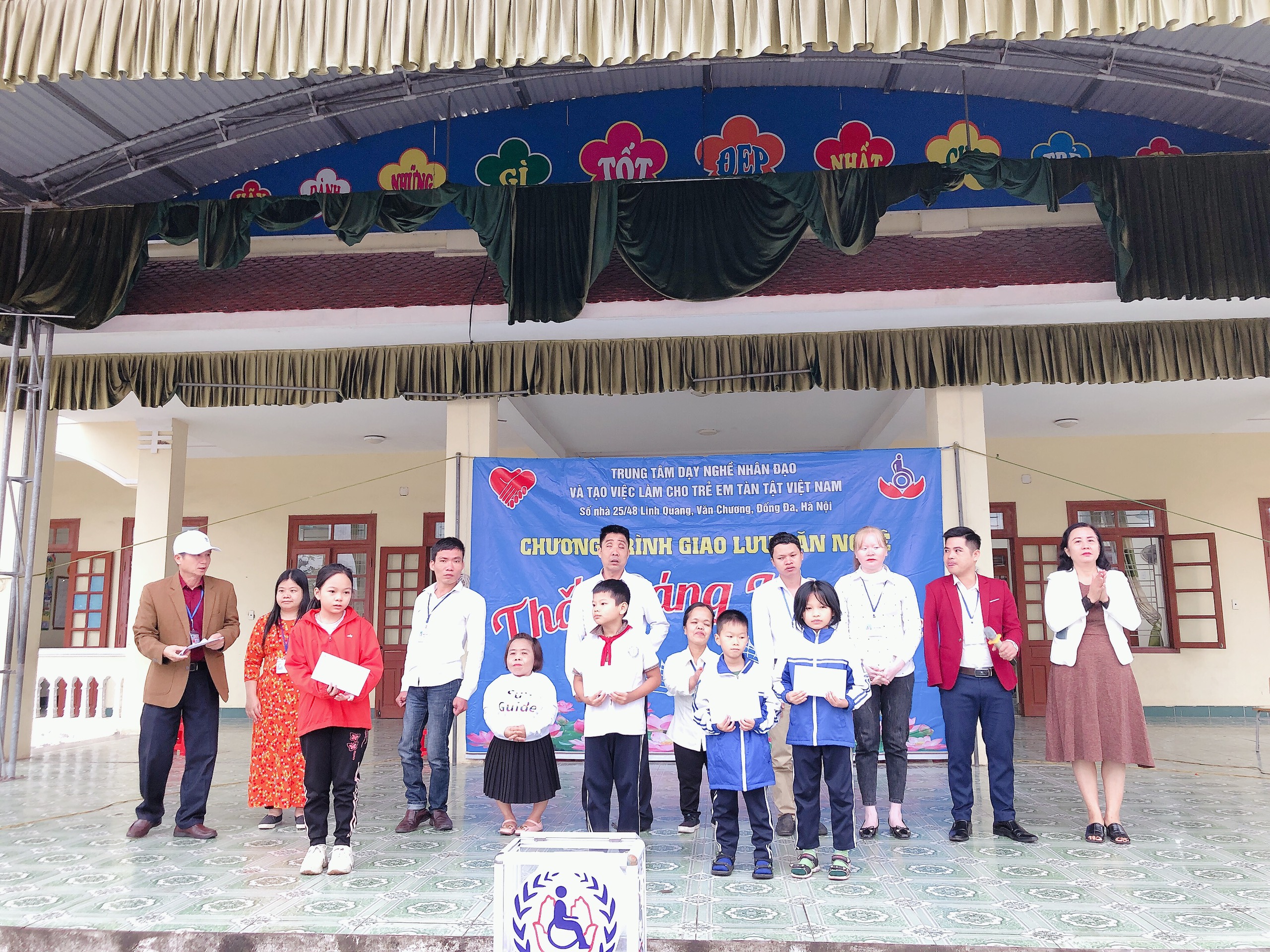 Sáng ngày 30/11, trường TH Quang Hưng đã phối hợp với Trung tâm dạy nghề nhân đạo và tạo việc làm cho trẻ tàn tật Việt Nam tổ chức buổi giao lưu văn nghệ với chủ đề Thắp sáng ước mơ